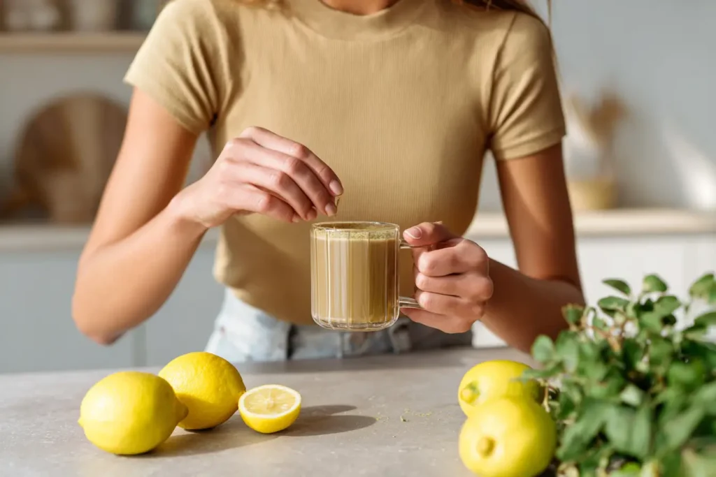 Ein einfaches, gesundes Getränk mit Bergwurzel Pulver zur Unterstützung von Verdauung, Stoffwechsel und Wohlbefinden – ideal für den täglichen Start.